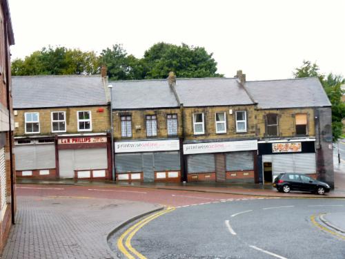 In the next section, on the left there are some ill maintained shops, some open, most shuttered up and some shops now converted to dwellings. All should be