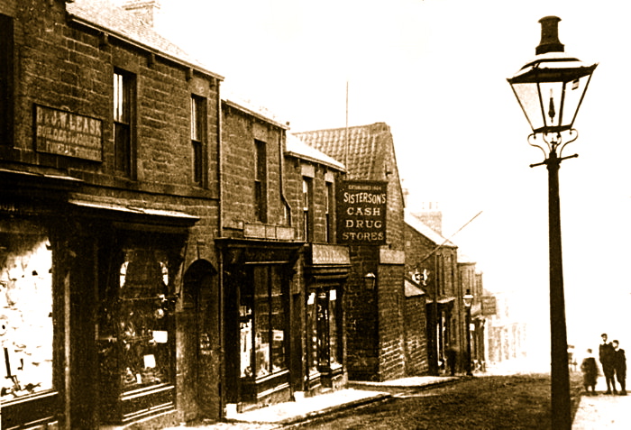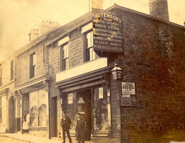 The two Sisterson shops next to each other .The top one is the Wallpaper and Paint and the next one is the Herbal, Medicine and Drug store, both run by Robert S. He was of the paint trade but he also ran the Herbalist business stated by his father Thomas S. Eventually his two sons took over. Stuart S ran the decorator shop and Thomas, Jnr became a qualified dispensing chemist and optician and took the herbal medicine shop into the second half of the 20th Century