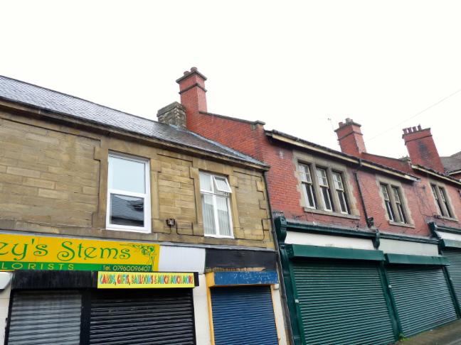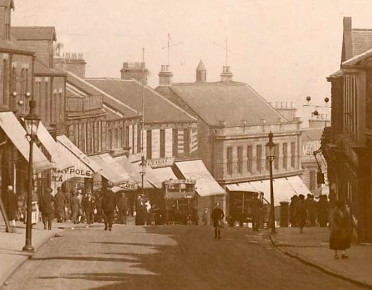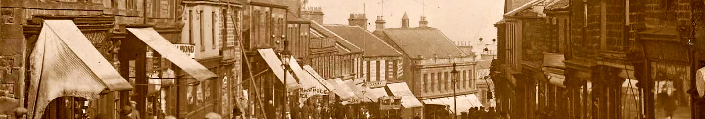 The next one down from Sistersons with the gable end facing the street later had a shop front fitted. At various times Gallon's supermarket was there and then a Baby Wool shop. Next three shops had J C Graham, Halifax and Bradley Jewellers