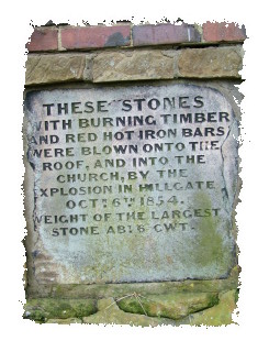 A dreadful fire took place at Gateshead on the morning of the 6th October. 1854. It broke out on the premises of a worsted factory in the vicinity of Hillgate, and the flames soon spread to the neighbouring buildings, in which great quantities of sulphur, lead, and tallow had been stored. Large numbers of persons were everywhere engaged in endeavouring to arrest the progress of the destructive element, and as the flames reached the bonded warehouses their activity and anxiety were redoubled. A detachment of military, fifty strong. hastened down with their barrack engine to assist those already at work, and other aid was telegraphed for. A slight concussion warned the gathering crowd that there was something more perilous than sulphur in the burning pile ; but it was naturally supposed that with the shock the danger had ceased. A few minutes later the misinterpreted warning received a terrible fulfilment. The air was rent as with the voice of many thunders, and filled as if with the spume of a volcano. Massive walls were crumbled into heaps blocks of houses tumbled into ruins, windows shattered from their frames far and near, and a shower of burning timbers and crashing stones rained terror. death, and fresh destruction on every side. Of the fifty soldiers advancing with their engine, thirty were struck down—two of them dead, and one with an iron rail driven into his body. Firemen and helping citizens were crushed where they stood. Some, looking on in helpless amazement, were, in a moment, stricken beyond consciousness. Some perished under their own roofs, while others fell beneath the descending fragments. The wreck, &c.. in Gateshead, may be described in the following manner:—First, at the east end of Hlillgate, and forming the limit of the eruption, was the well-known vinegar manufactory of Messrs. Singers, which was totally demolished ; while proceeding from this point up the quay, a range of houses, followed by the exploded bond warehouses, Messrs. Carr's timber yard, Messrs. Wilsons worsted manufactory, and lastly, the engine manufactory of Mr. Bulcraig, this latter place forming the western limit. Running parallel with these premises, but on the opposite side of Hillgate, commencing with the shop of Mr. Lumsden, grocer, was a large cluster of houses, while the large flour mill of Mr. Davison was closely contiguous. These from their proximity to the worsted mill and bonded warehouses, received the full force of the concussion, and were totally destroyed. The houses in Church-walk were also entirely demolished. A short way beyond Buleraig's engine works another disastrous scene presented itself. The property at this place formed the left side of Bridge street, from Tyne Bridge up to Hillgate, and, as the back of these premises consisted of numerous factories, nothing could describe their bulged and tottering condition more forcibly than comparing them to having been subjected to some heavy cannonade, while the valuable commodities within them were laid waste by the same ruinous process. The whole of Cannon street, on the south side of St. Mary's Churchyard, was from end to end a mass of ruins. The ruins on Newcastle Quay extended from the Sand Hill to the Custom house, and reached almost as far back as Butcher-bank. In the foreground, there was, as at Gateshead, little to meet the eye but a mass of blackened rubbish, but, further back, portions of houses were left standing in all manner of attitudes. Here a gable stood alone—there a house was cut into a section, and presented to the spectator all the domestic arrangements which the unfortunate inmates had made before the catastrophe overtook them. In some parts one end of a house had fallen, leaving the roof half supported by that which still stood, while others were all but utterly demolished. The number of killed and wounded amounted to upwards of 270 persons, of whom twenty-five were killed in Gateshead, on the spot, and five in Newcastle—three died subsequently in Gateshead, and ten in the Newcastle Infirmary—the remainder were all more or less injured. The value of the property destroyed was more than £1,000,000.